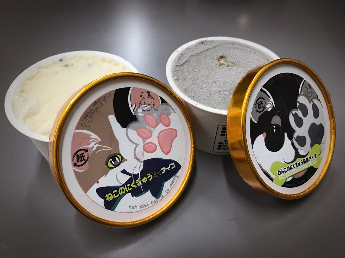 肉球冰淇淋共推出兩種口味,貓咪肉球風味以及狗狗肉球風味。貓咪肉球冰淇淋是由香草冰淇淋作為基底,而肉球的QQ口感則是用棉花糖表現~狗狗肉球冰淇淋則是以芝麻冰淇淋作為基底,焦糖爆米花來模仿狗狗爪子硬硬的口感。