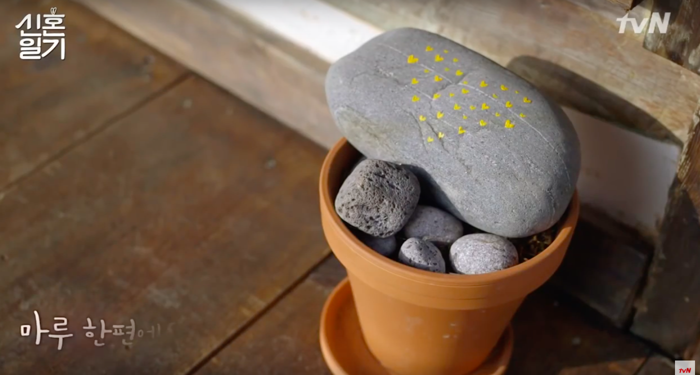 非常有藝術美感的具惠善,連在石頭上點幾個黃點都讓一顆石頭變得很不平凡!