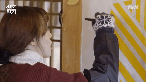 在牆壁上作畫也難不倒具惠善,線條怎麼可以畫的這麼直?!(妞編輯就是不會畫畫的人)而且咬著筆的樣子好有畫家範兒。