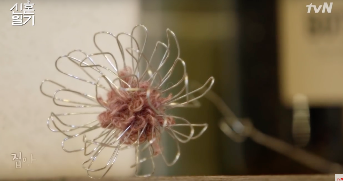 具惠善簡單在木頭上畫了幾筆,雖然只是簡單地畫出了一男一女小公仔,然後再用毛線裝飾,然後掛在自家門前,就整個超級可愛,很有特色,連安宰賢都讚嘆:「太不可思議了~」