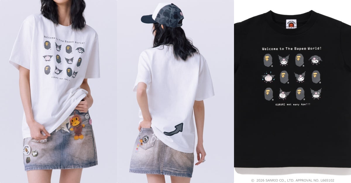 這次的限定聯名系列合作,讓Kitty、酷洛米(Kuromi)兩大人氣角色,直接亂入「CAMO招牌迷彩圖騰」,大玩捉迷藏遊戲,每一件都超趣味有梗,在日本一釋出就引爆超高關注,燒到韓妞也瘋狂轉PO,台灣將於3月14日於在A BATHING APE®授權門市及BAPE.COM開賣,要搶要快!
