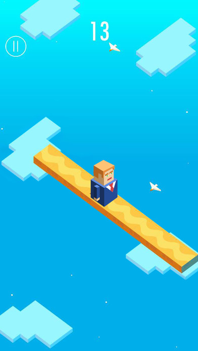 第二款的主角則是最近剛當選美國總統的川普,玩家同樣需要想辦法收集越多的鑽石和解鎖新角色,帶他變身成為競速之王,還要小心不要掉下去喔!