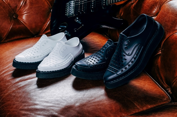 與百年英國製鞋GEORGE COX聯乘出品。結合龐克外表與EVA的新火花。取代傳統經典的重量,將縫合洞轉為透氣孔,簡化保養程序,給你不失龐克氣息的舒適新觀感。