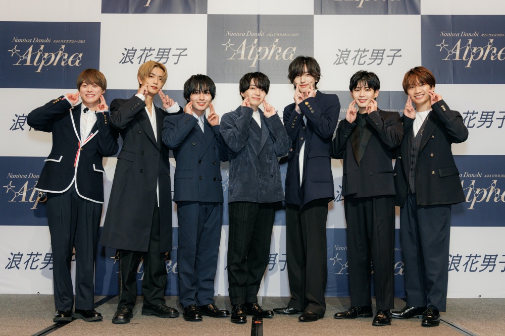 記者會開場,浪花男子的大橋和也、高橋恭平、大西流星、西畑大吾、道枝駿佑、長尾謙杜、藤原丈一郎依序上台。七位成員一字排開,不僅全都換上超帥西裝亮相,每位成員還都精心準備了中文的自我介紹跟大家打招呼。