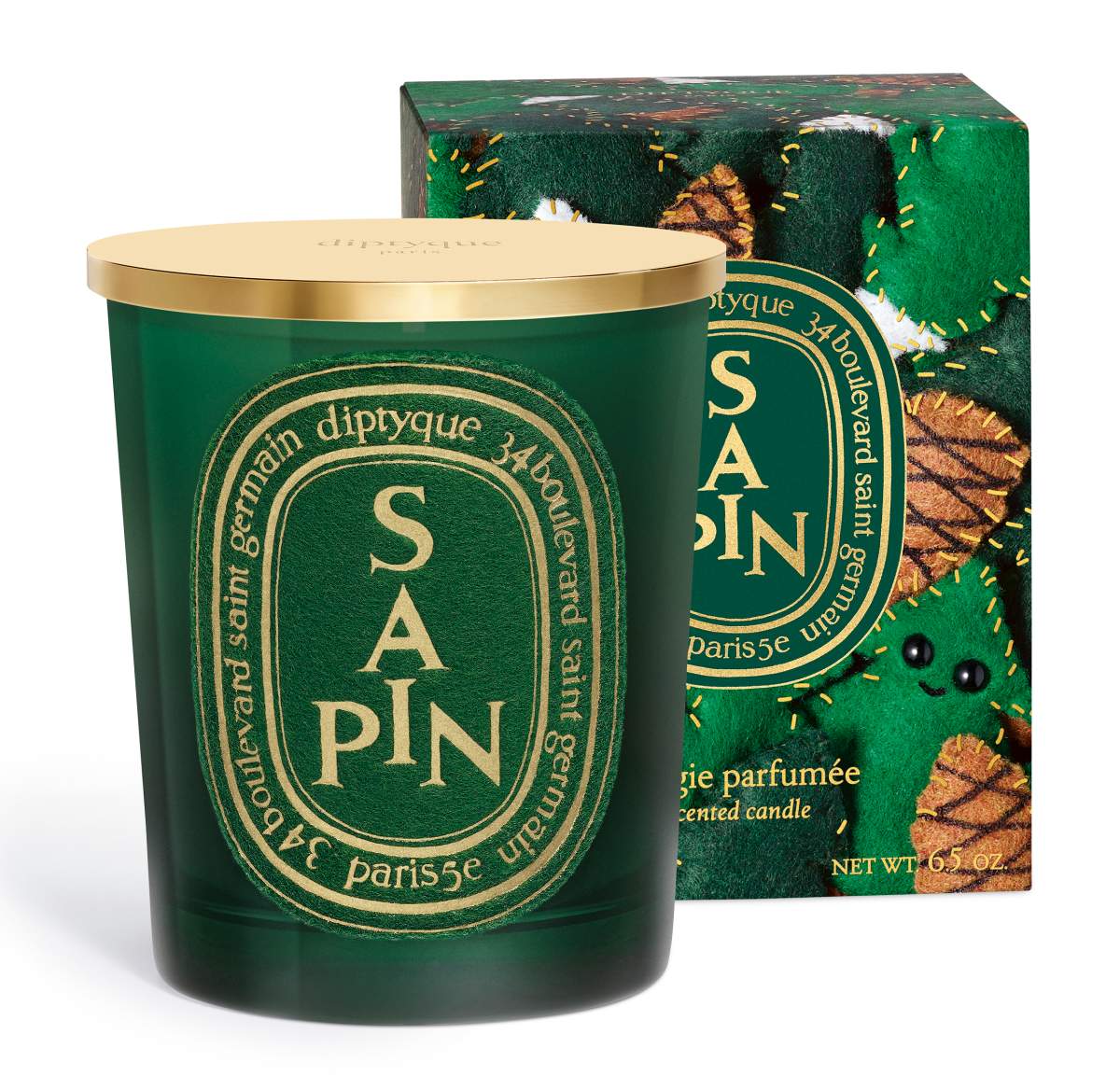 資深香民一定不陌生的Sapin(冷杉),演繹西伯利亞冷杉精華與冷杉香脂氣息交相融合的創意香調,點燃蠟燭後的香味,就像新鮮的聖誕樹在眼前,清新的冷杉針葉結合樹脂芬芳,再輔以雪松及印尼廣藿香氣味。今年的燭杯選用了深綠色,搭配同色調的毛氊橢圓標誌,非常有過聖誕的氛圍。容量有70g,無附蓋,190g則有金蓋。