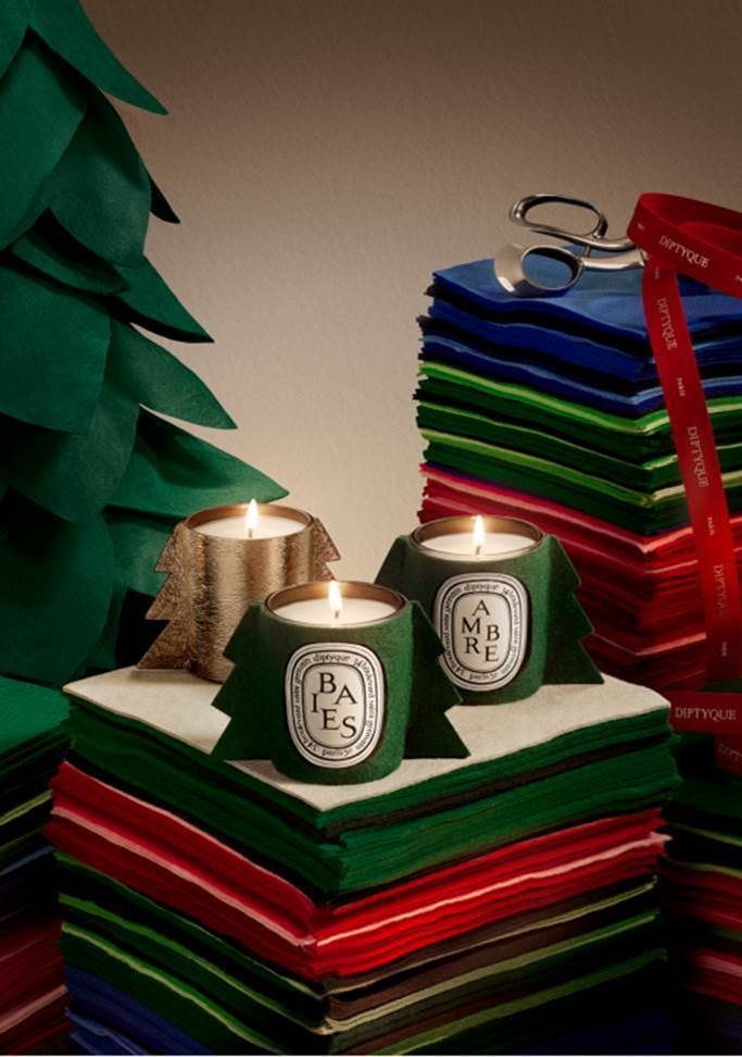 DIPTYQUE 2024限量聖誕松樹面料與皮革蠟燭裝飾