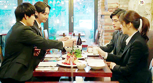 有天晚上,JENNY帶我一起去參加他的同事聚餐,體驗韓國喝酒文化。在烤肉店就喝了起來,突然有位同事「啪」的一聲倒在桌上,頭髮都上了烤肉架了!一陣兵荒馬亂後,有人送他去搭車回家。