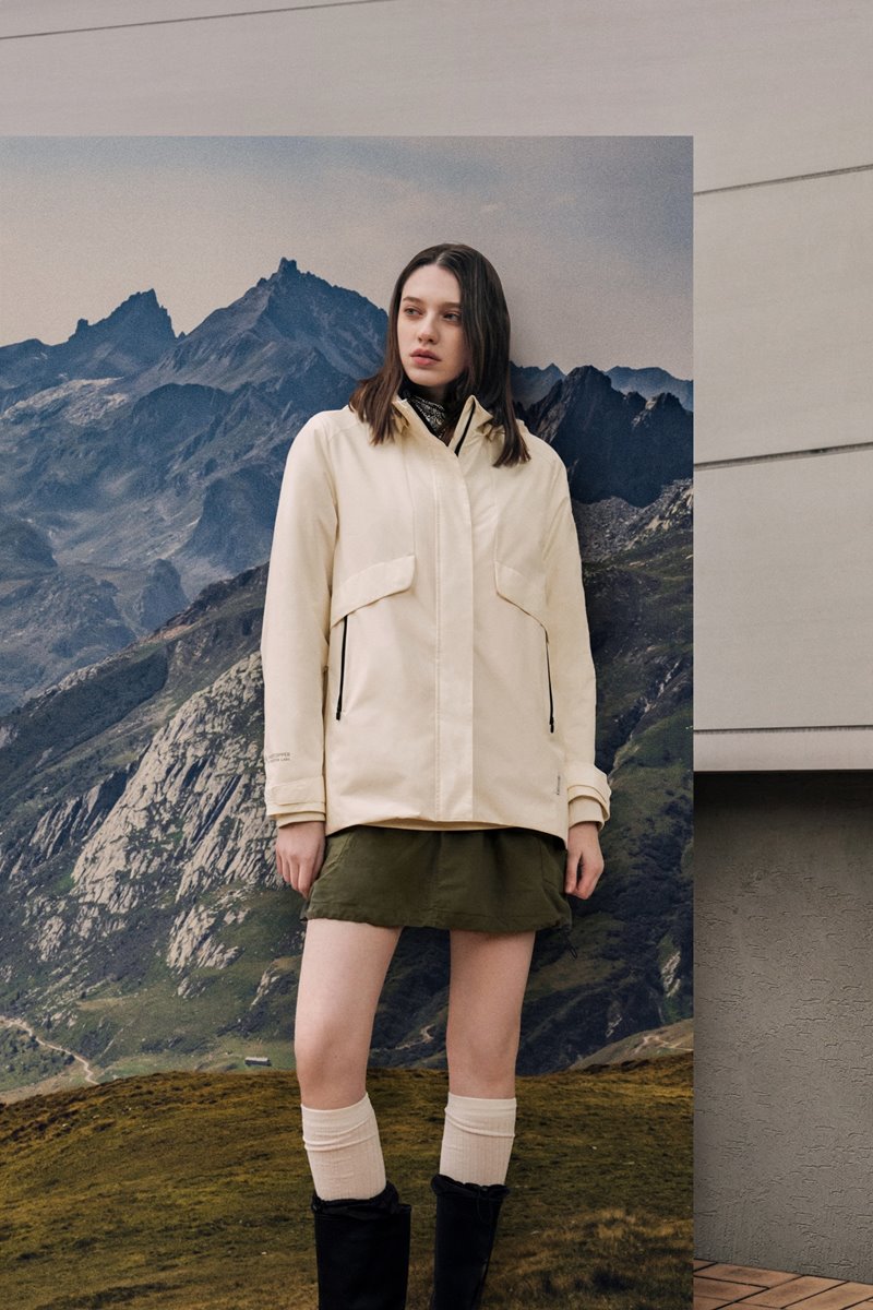 女款系列同時採用多功能布料並搭配細節的設計,讓女性在穿著上更有許多使用上的貼心,並選用亞洲人的版型讓外套更符合修身的線條。