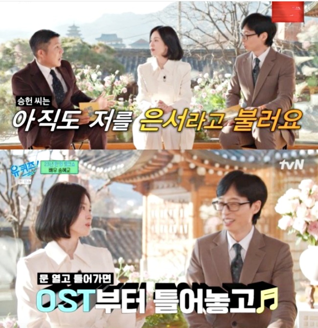 與宋承憲私下依舊保持聯繫的宋慧喬,透露偶爾會一起聚會,一打開門居然聽到宋承憲特別播放《藍色生死戀》的O.S.T迎接,還會一秒入戲變身當年劇中的哥哥俊熙說著:「恩熙,來啦?」已經過了25年還沒下戲的荒謬舉動,讓宋慧喬很受不了大喊:「夠了喔!」爆笑內容馬上被瘋傳~