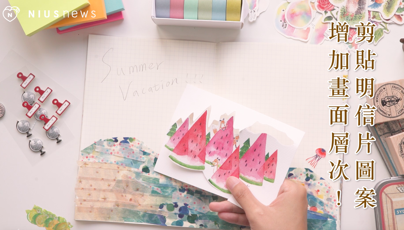 妞編輯來教大家!把明信片上的可愛圖案剪貼過後用在手帳上,既可以留住回憶,又可以增添畫面的層次感,不管是質地或是色調都另有一番風味,是非常好用的小絕招喔!