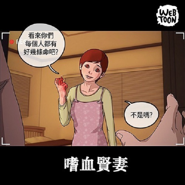 穩坐LINE WEBTOON恐怖排行榜的《嗜血賢妻》,絕對能滿足驚悚漫畫愛好者的胃~看完漫畫都開始懷疑身邊有沒有可怕人士了!(中毒太深XD)