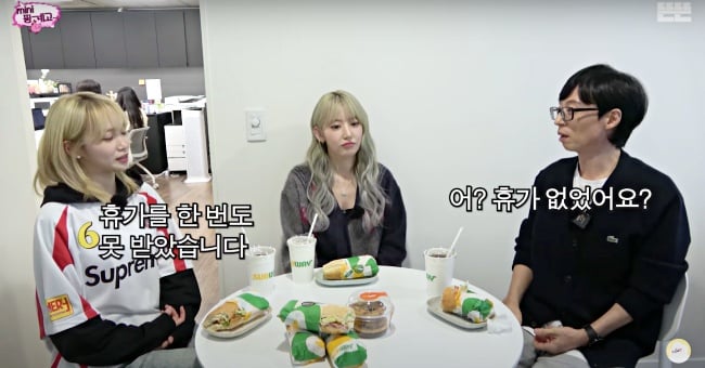 日籍成員宮脇咲良(小櫻花)、隊長金采源近日登上由國民MC「劉在錫」主持的YouTube頻道節目「뜬뜬편집실(OneCam)」宣傳新歌,身為通告、活動滿滿的大勢女團,當被問到「春節連休行程」時,采源表示:「因為要回歸了!所以在準備中沒有休假」,這時小櫻花爆料:「出道以來目前一次休假都沒有得到過」,讓主持人也擔心家人在日本的小櫻花該如何調適…