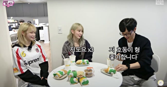小櫻花透露:「真的很開心,(劉在錫)很照顧我們讓我覺得很自在」,原本應該在這裡打住就好,沒想到補了一句:「我原本是姜虎東LINE的」,讓劉在錫秒驚慌(?)到不小心差點打翻飲料,馬上急澄清:「我很喜歡虎東哥」。
