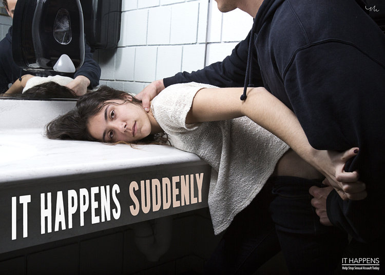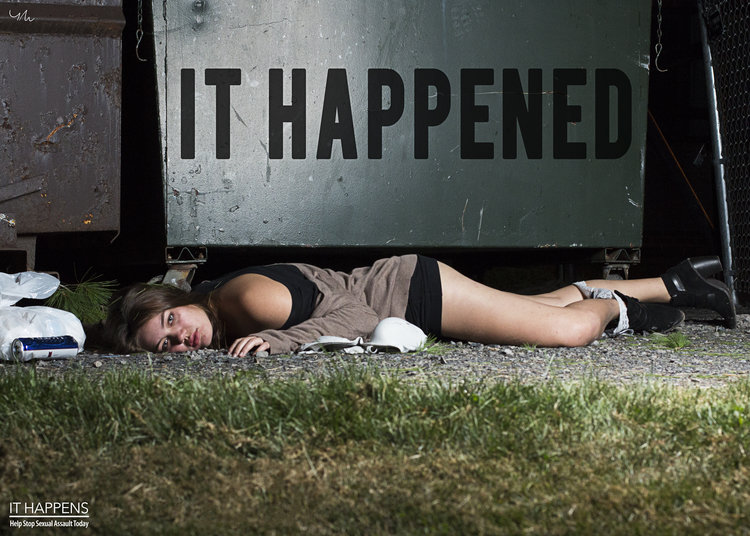 20歲的大學生Yana Mazurkevich為反映這種扭曲的校園亂象,以《It Happens》為題進行了攝影創作。將校園性侵當下場景、被害人驚恐的眼神和加害人強勢的暴力舉動透過照片傳遞出來,震撼的畫面很快引起千萬網友熱議: