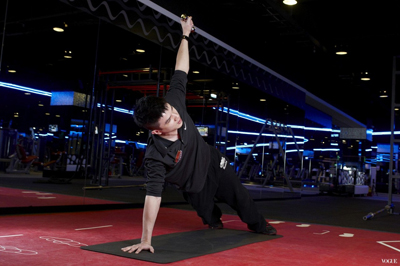一般人穿著緊身上衣或緊身褲時,常常會擠出腰側兩旁的贅肉,若再不細心關照,很容易就開始邁入酒桶型身材了。教練示範的是一個全身性的扭轉動作,利用旋轉的動作破壞身體的重心,讓側腹的肌肉有效地施力來幫助平衡,不僅可訓練到肩膀、手臂、胸、側腹、腹部核心、髖關節及背部的力量,搭配旋轉速度還能進階加強肌肉的訓練強度。