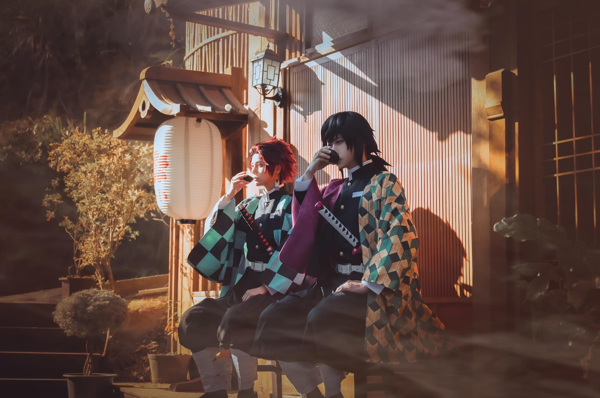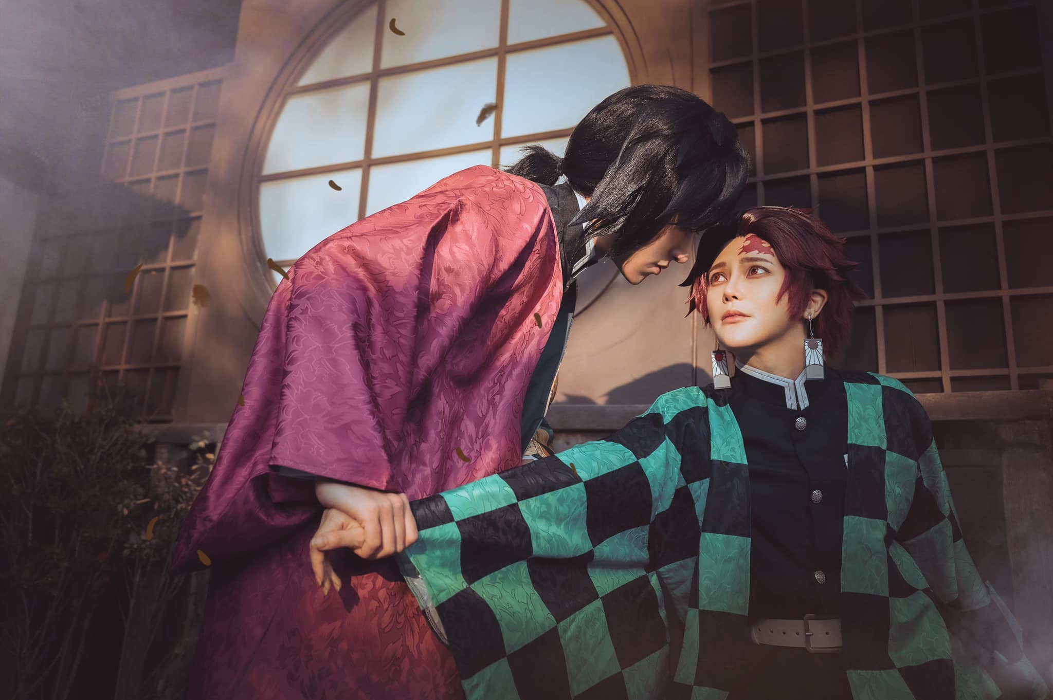 賴品妤不但曾化身《鬼滅之刃》的蟲柱「胡蝶忍」,更和曾玟學一起扮演了「炭治郎」及水柱「富岡義勇」的義炭CP。置身於日式的老宅、街道之中,仿佛穿梭時空般來到了動畫背景的大正時代,彼此的互動更是甜上加甜!