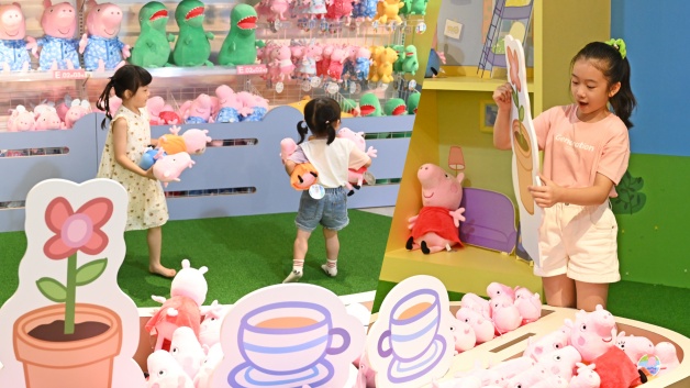媽媽妞直衝「粉紅豬小妹展示區」,展區內打造兒童們可乘坐的小火車裝置,由豬爸爸在火車頭帶領大家參觀粉紅豬小妹的小屋場景,包含佩佩豬在內,豬爸爸媽媽爺爺、喬治等全部齊聚一堂,妞妞們也可以找找看佩佩最愛的熊熊喔!