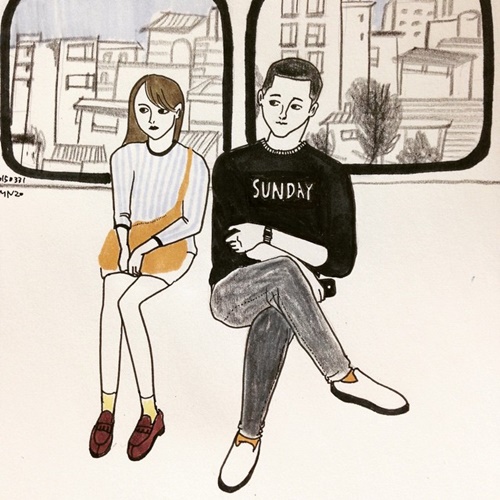每幅畫裡都隱藏一個小故事,每個眼神、細微的動作似乎在默默訴說那個沒辦法親口表達的心情。大家是不是都有過類似的經驗呢? (PS:所有男女主角都是韓系潮流打扮耶,好好看)