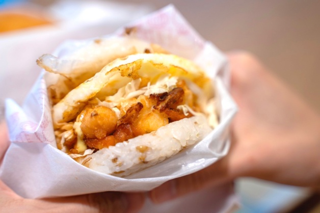 「日出大阪燒珍珠堡」靈感來自於大阪燒,嚴選鮮蝦、魷魚、扇貝和鮮甜蔬菜高溫酥炸成「海鮮天婦羅」,放在Q彈超級大麥米飯上 ,鋪滿清爽高麗菜絲,放入招牌的香煎元氣蛋,淋上美乃滋和日本進口道地大阪燒醬,最後用鮮香十足的柴魚片提味點綴。另外也同步推出山葵風味的「日出大阪燒珍珠堡」,喜歡嗆辣的妞妞們千萬不要錯過!