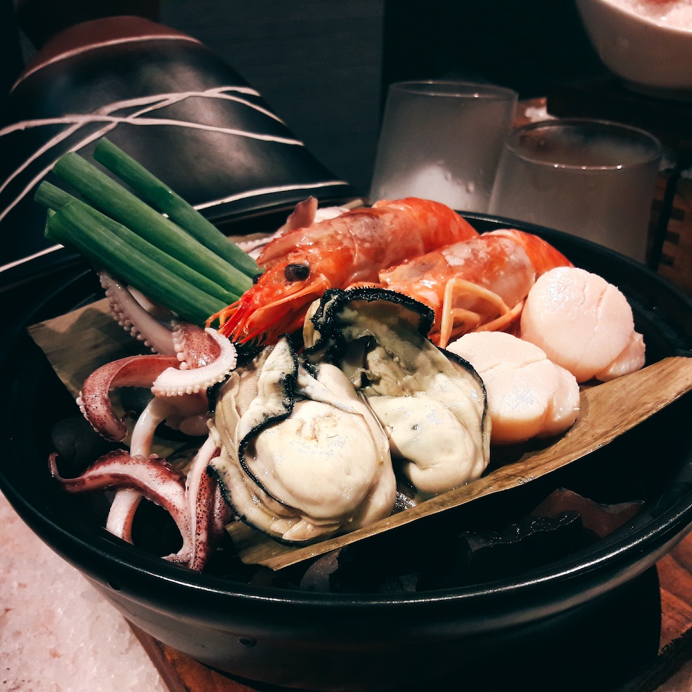 「酒蒸海之幸」使用北海道干貝、廣島牡蠣、天使紅蝦等頂級海鮮,淋上清酒現蒸3分鐘,吃得到海鮮原本的甜,鮮味十足!(很適合點一鍋給男友吃XD)