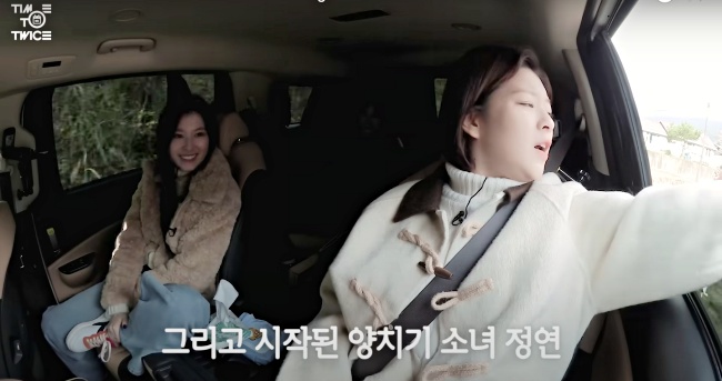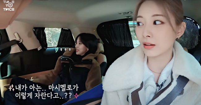 TWICE最近推出新節目《TIME TO TWICE》,全體成員們一起遠離都市,預計來一場「12月的治癒旅程」,其中與Mina、定延、Sana與忙內成員子瑜同車前往,路途中晴空萬里,成員們紛紛讚嘆天邊的雲朵超像「可愛的棉花糖」,這時候定延壞心地開啟騙局,指著雲朵、跟後座的子瑜說:「那就是棉花糖」,Sana馬上配合:「真的是!把那個切下來拿去賣的」,本來一直不相信的子瑜,也越來越不堅定…