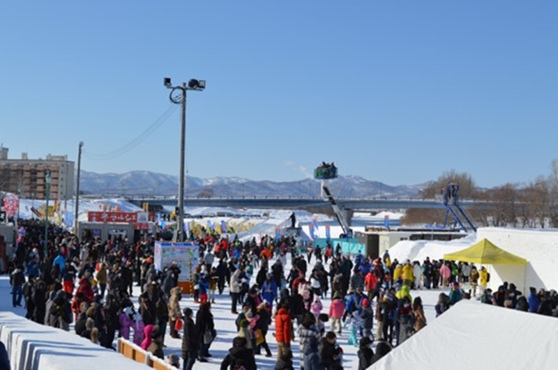 北海道三大冬季祭典之一的「旭川冬季祭典」,以高達20公尺的世界最大等級雪雕為主,市民製作的雪雕和冰雕作品齊聚一堂。設有利用光雕投影的大雪雕、可欣賞音樂表演的舞台、大雪雕滑梯以及用雪製作的巨大迷宮以外,還有許多提供各地美食的餐車攤位,全家都能在此享受冬季樂趣呢。