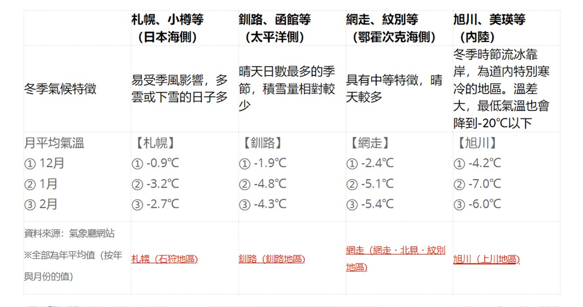 然而,雖說是北海道,但由於被日本海、太平洋和鄂霍次克海三個海洋所包圍,因地形的不同,氣候特徵也會有所變化。