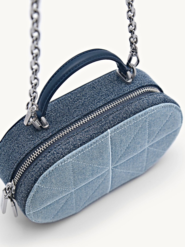 就說丹寧牛仔包是百變女王,PEDRO的這款小巧單肩包,完全能當職場OL的時髦戰包!獨特的橢圓形輪廓搭配「幾何像素、深淺拼接」設計,硬挺包型增添典雅、大氣感,完美融合復古與現代風格,如果再換上「銀白鍊條揹帶」,與銀白拉鍊細節相呼應,霧面光彩、俐落氣勢超適合配上正式服裝。