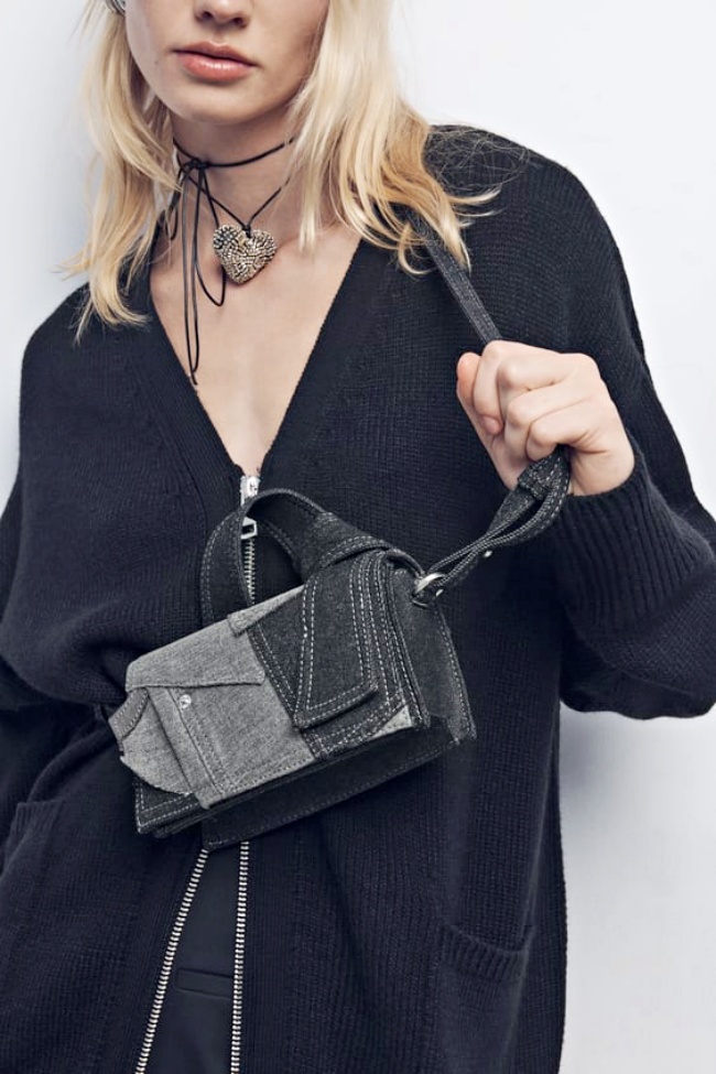 不收藍色系丹寧也可以!ZARA本季也大玩拼接,這款迷你手提包選擇的就是帥度更高的「灰色系牛仔布料」,以「立體層疊」的效果時髦組合成包面,還能看到細節處的白色車縫線,就連提帶都很獨特,採用打結方式的寬版設計,帥歐逆們一定要來一咖~