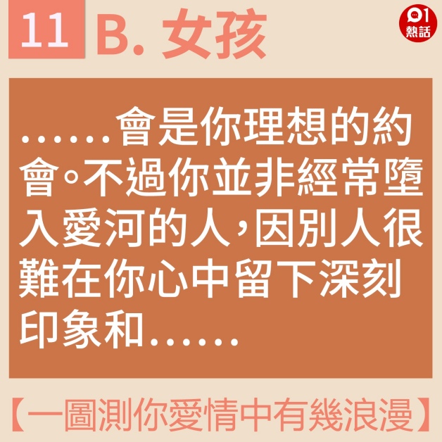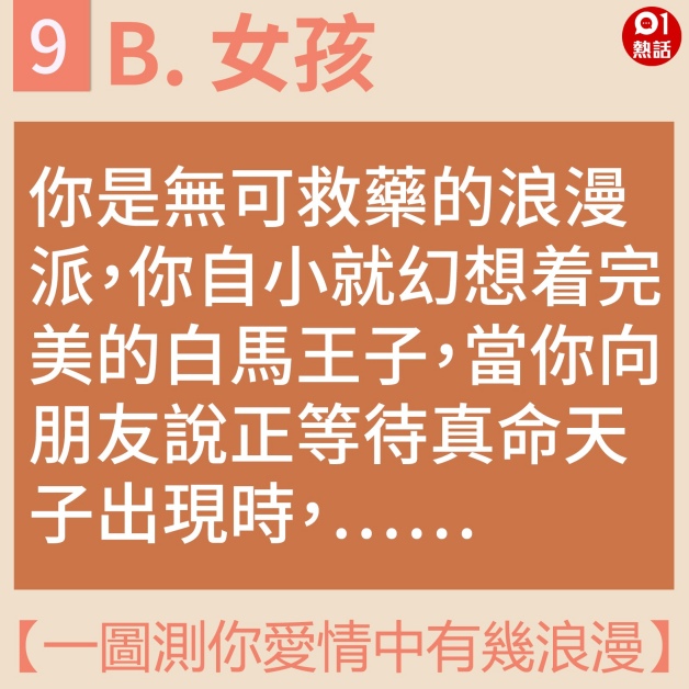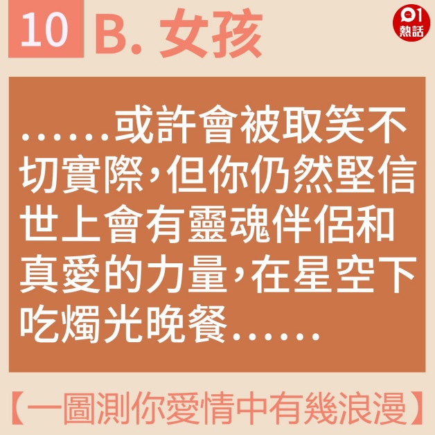 每個人於愛情中都會展現不同的模樣,天性熱情浪漫的人愛說情話,不時為伴侶製造驚喜,理性務實的人少說話多做事,認真為彼此規劃未來。外國網站「Mind Journal」一個心理測驗能準確測出一個人於屬於浪漫派還是理性派,不妨玩玩吧!