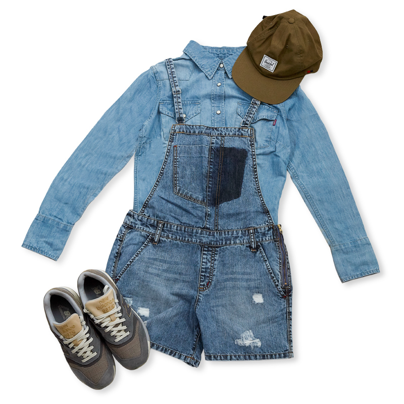 擁有男孩面貌的丹寧吊帶短褲,妞編將賦予它新的風格,轉化為擁有女孩感的時髦風格,或是加深男孩印象,成為休閒界的霸主!