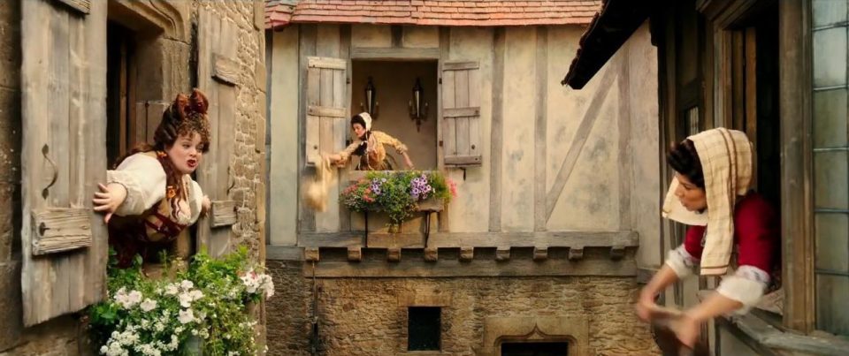 不論是卡通還是電影版,大家都對貝兒居住的那個小村莊印象深刻吧!貝兒邊看書邊穿梭整個市集、居民們在廣場上唱歌跳舞,氣氛好溫暖又歡樂。從之前電影版釋出的幕後花絮可以看到,這個小鎮是工作人員耗費許多心力搭建出來場景,並不是實景。