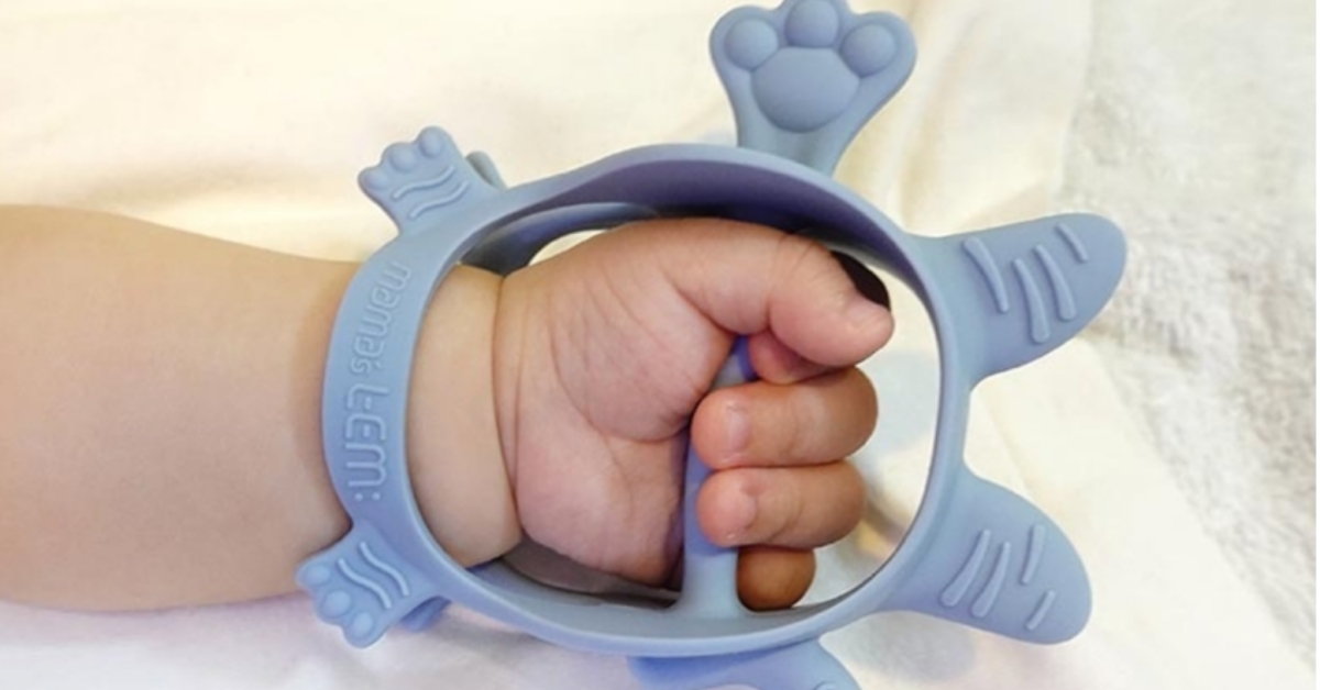不過,面對市面上玲琅滿目的固齒器,很多新手爸媽都有不知道該如何挑選的相同困擾。饒倫瑋醫生分享,和太太在幫兩個小朋友選擇固齒器時,材質是首要的挑選關鍵,畢竟是寶寶要放嘴巴咬的東西,選擇經過多項國際安全認證,及使用安全無毒的食用級矽膠材質,能高溫消毒,會比較放心讓寶寶啃咬另外,還有一個令許多家長感到困擾不已的情況,就是寶寶很喜歡跟爸爸媽媽玩你丟我撿的遊戲,常消毒或洗完的玩具,下一秒就被丟在地上,重複循環做這些事,也是一件很累的事情。饒倫瑋醫生也提醒,由於台灣腸病毒和諾羅病毒盛行,給寶寶的固齒器必須定時清潔、消毒,且有國外品牌的固齒器,特別針對新生兒的行為跟動作,研究開發出可直接套入寶寶手腕,能減少寶寶甩開、掉落地面接觸細菌的機會,如此一來,就能幫各位新手爸媽省去不少心力,讓育兒生活變得更加輕鬆! 根據新生兒自然地反射反應,MAMA's TEM獨創底部開口設計,能讓寶寶輕鬆自然的抓握啃咬,更減少掉落地上沾污的機會。