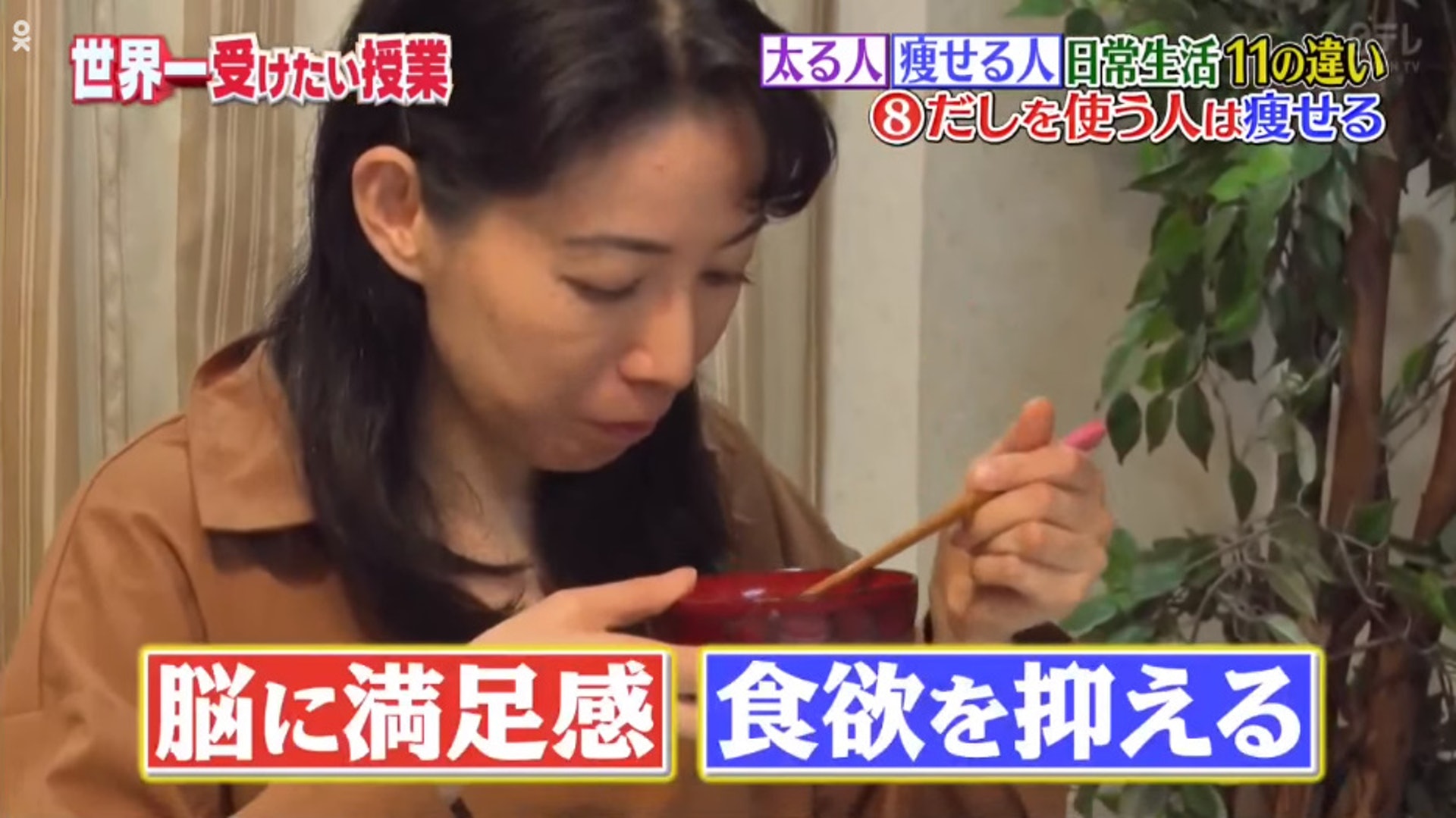舌頭經常積聚食物殘渣和細菌,阻隔味蕾令食量增加,而且口味越來越重。飲用昆布高湯可以清掃味蕾,令腦部感到滿足,壓制食欲。