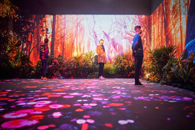這次展覽還使用AR眼鏡,「佐臻智慧型眼鏡」首次結合內容在「四季長桌」展區同步展出,AR智慧眼鏡在妞妞們體驗的過程中會帶來更加科技且智能的感官享受,妞妞們可透過AR眼鏡、5G手機抓取雲端2D/3D物件「泡泡/花瓣」,搭配各時區主題,將其投影於影境內,與沉浸投影完美融合!