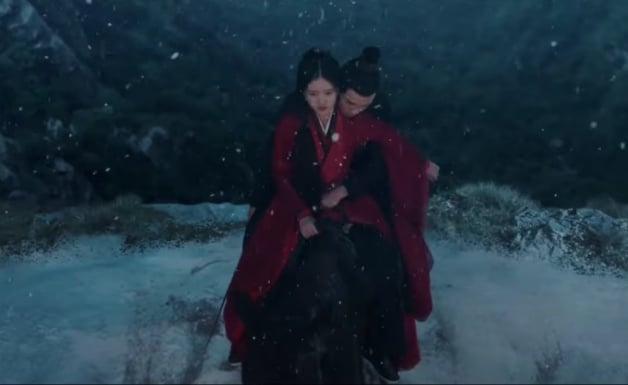 「少商,你害怕嗎?你說過要對我好的,今夜我們就一起走。」凌不疑一把抱起程少商,鄰近山崖時,死士護衛著凌二叔和凌三叔,最後十一郎把自己的裘皮披在嫋嫋身上,一句「後會無期」把她拋了出去,自己掉下懸崖,看劇版應該會有更動,因為有出現少商騎馬救凌不疑,最終他縱身跳下的畫面!