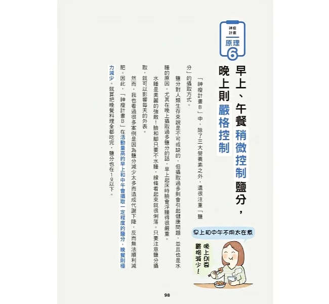 「7日神級瘦身餐」詳細食譜都在這本!依據不同需求提出神瘦計畫A、神瘦計畫B兩套神瘦計畫,詳細規劃7天三餐的食譜,並附上TIPS,了解該餐飲食的營養價值、挑選技巧及替代食材,同時使用超市、超商就能輕鬆取得的現成食物及食材,以插圖方式輔助說明,執行起來無難度,號招大家7天後一起變美~