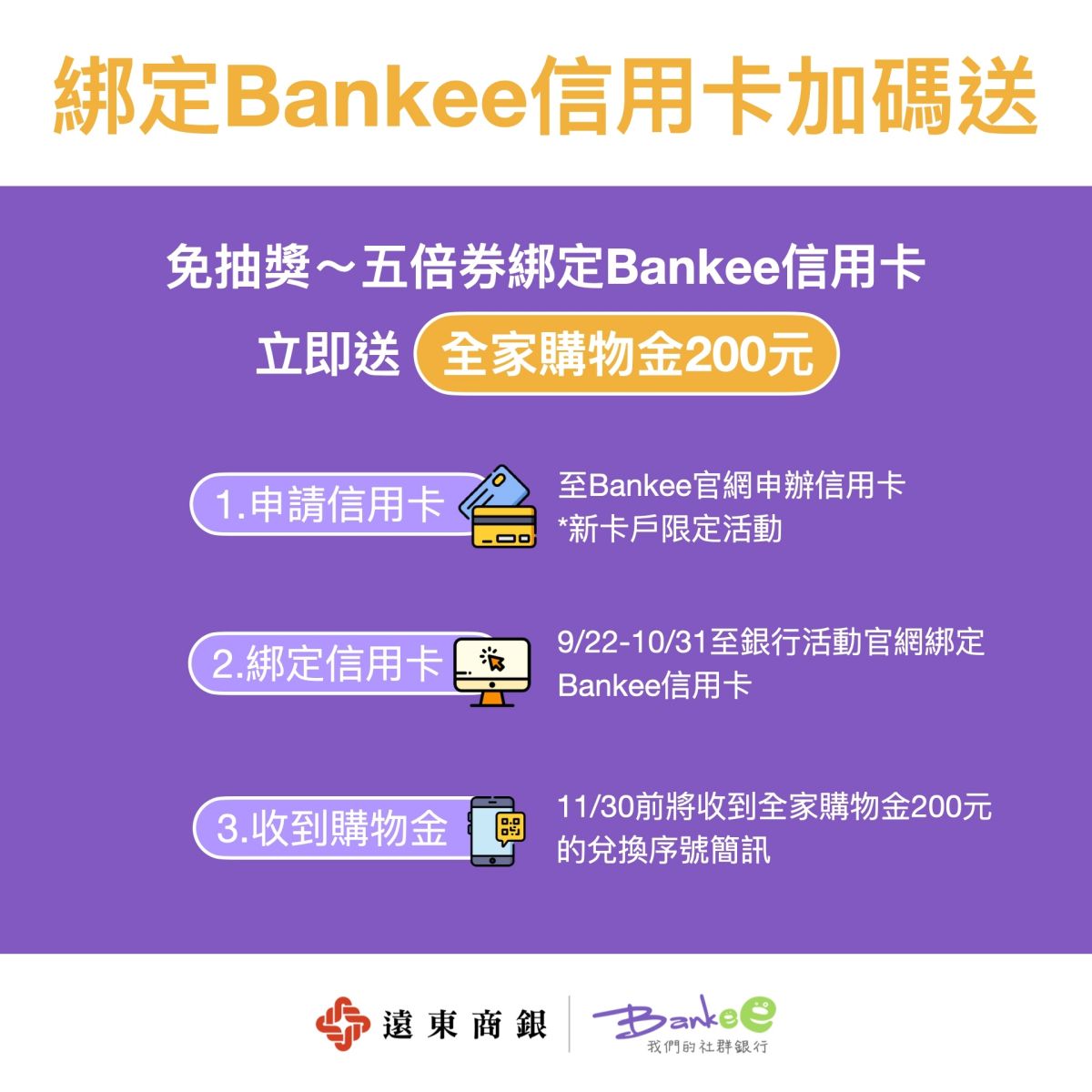 前3000名綁定成功,消費滿額加碼贈100元回饋金,共同綁定消費滿額再加碼贈,最高贈300元回饋金。