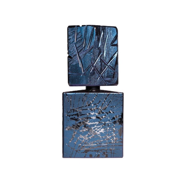 鍍上一層藍紫色的細砂噴漆,以銼刀純手工刻劃出不規則線條,代表的是苦難劃出的疤痕,瓶身用不同角度可以看到多種華麗色彩,有如波光粼粼的水面。花果的清香與糖霜的甘甜相輔相成,平衡拿捏得恰到好處,猶如九零年代的經典女香,美好、璀璨的各種花香凝聚於此。黑醋栗獨樹一幟,柑橘清透的酸楚昇華了古板的甜味,天芥菜繼承上個世紀的經典粉感,帶出時代的精髓。