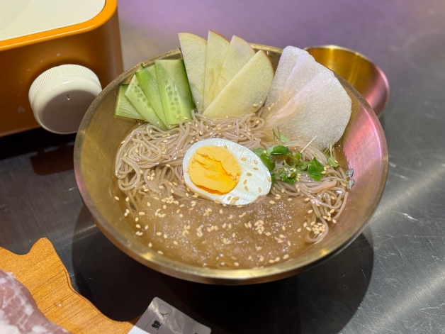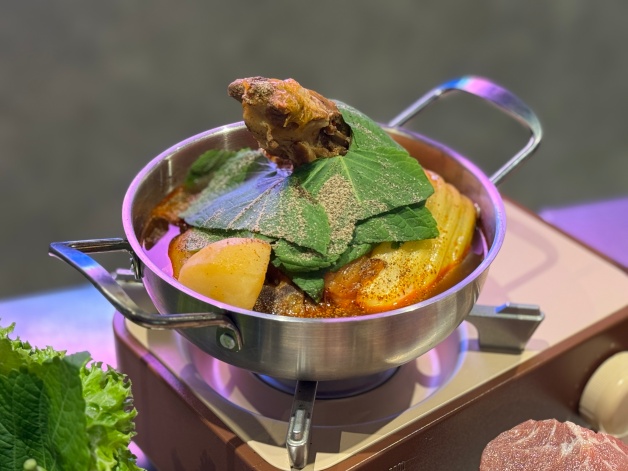 韓式熱鍋有「韓式大醬豆腐鍋」、「辛奇豬肉豆腐鍋」、「元祖馬鈴薯龍骨鍋(+$150)」,辛奇豬肉豆腐鍋加入吸飽湯汁Q彈拉麵,好吃到速速叫(笑);元祖馬鈴薯龍骨鍋有著軟嫩龍骨和鬆軟馬鈴薯,灑滿芝麻葉和紫蘇粉,吃到尾聲,會倒入白飯、海苔等佐料,讓米粒吸收湯底精華製作「最韓拌飯」!