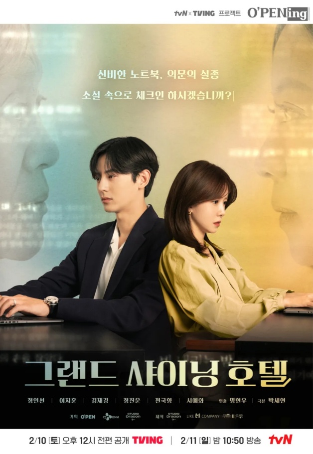 鄭仁仙、李知勳、金栽經、鄭珍雲主演的《Grand Shining Hotel》,講述一名被困在小說中的女性,為了拯救一名成為連環殺手目標的男性,進而追尋掌控一切神秘作者的驚悚故事!