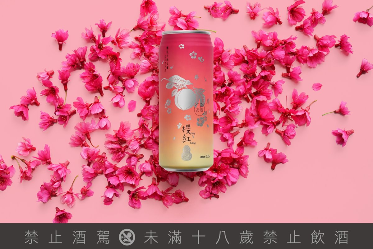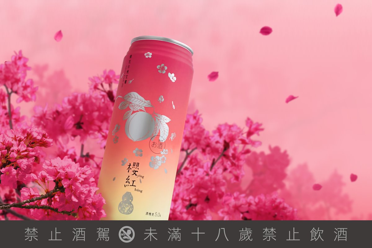 不只在風味充滿春光,在視覺上同樣令人驚豔!「櫻紅 櫻花白桃艾爾」的酒體透出嫣紅的透亮色澤,在酒杯中展現如同櫻花飄落的風雅情景。酒罐設計則是延續東方美學風格,飄落的櫻花與白桃的剪影交錯,在嫣紅的漸層底色中鋪展開來,搭配秀氣的楷書毛筆字體「櫻紅」,彷彿將春天的美景封存於其中,每一口都是視覺與味蕾的雙重享受。