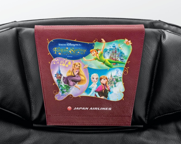 機上座椅枕頭套同步換上「夢幻泉鄉」設計,由Fantasy Springs、《冰雪奇緣》、《魔髮奇緣》、《彼得潘》四個區塊組成,紅色款為Class J 、黑色款為經濟艙,枕頭套是不能帶走的,記得相機先拍!