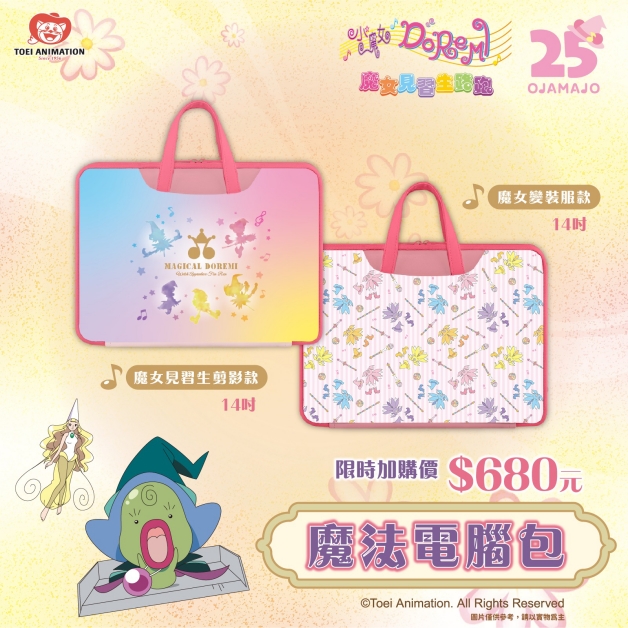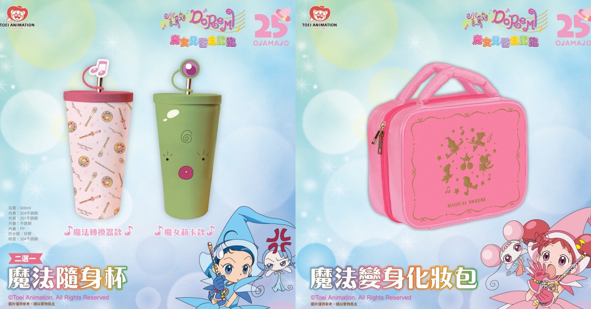 「魔女見習生組」,一樣有號碼布、見習衣、魔法巾、轉換器地墊、手機掛繩、轉換器鏡,還有「化妝包」、「隨身杯」;身為忠實粉絲的妞妞們,絕對不能沒有「魔法隨深杯」和「魔法變身化妝包」,魔法轉換器和魔女莉卡兩種杯子實在萌翻,粉嫩嫩的化妝包心情也跟著變好!