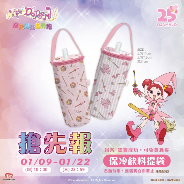 另,即日起至1/22前報名並繳費成功,即可免費獲得「保冷飲料提袋」,兩種款式隨機出貨,帶著保冷袋出門,就像Doremi一樣擁有魔法,一起踏上冒險旅程吧!