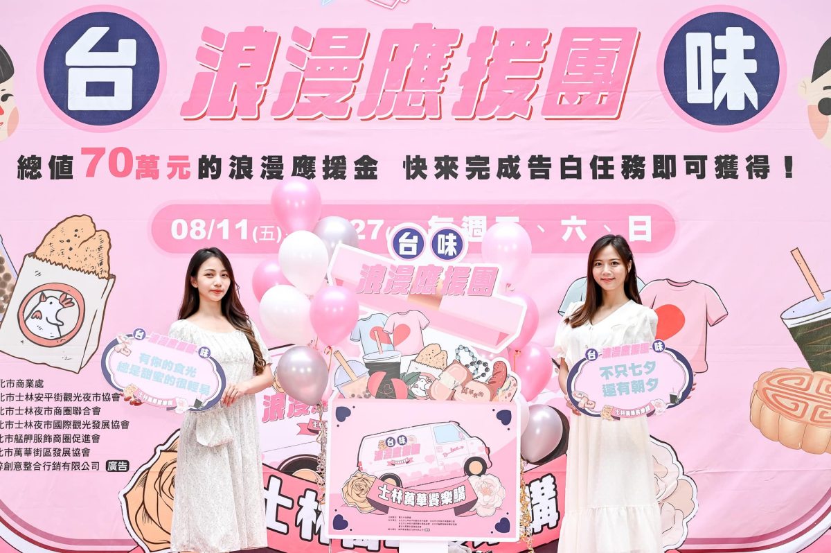 為推廣士林夜市商圈及萬華商圈特色,特別在七夕情人節前夕,將萬華的艋舺龍山寺月老,與約會勝地士林夜市商圈搭上線,集結兩處商圈在地逾200間特色店家打造「台味浪漫應援團」,透過一系列戀愛互動,如浪漫應援車、浪漫祝福牆等,讓大家把告白大聲說出來,並且拍下極具質感的照片,紀念最美好的一刻~
