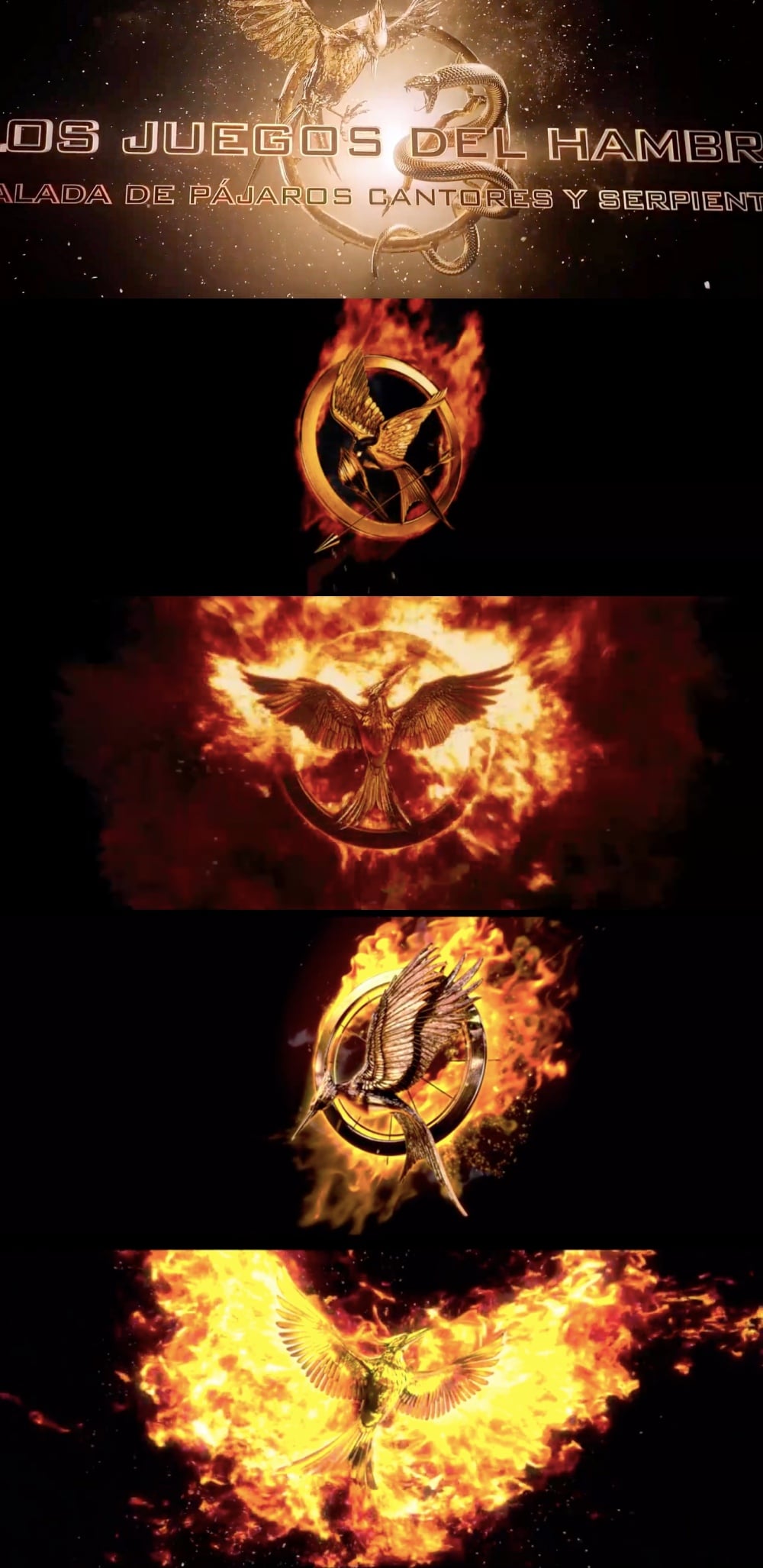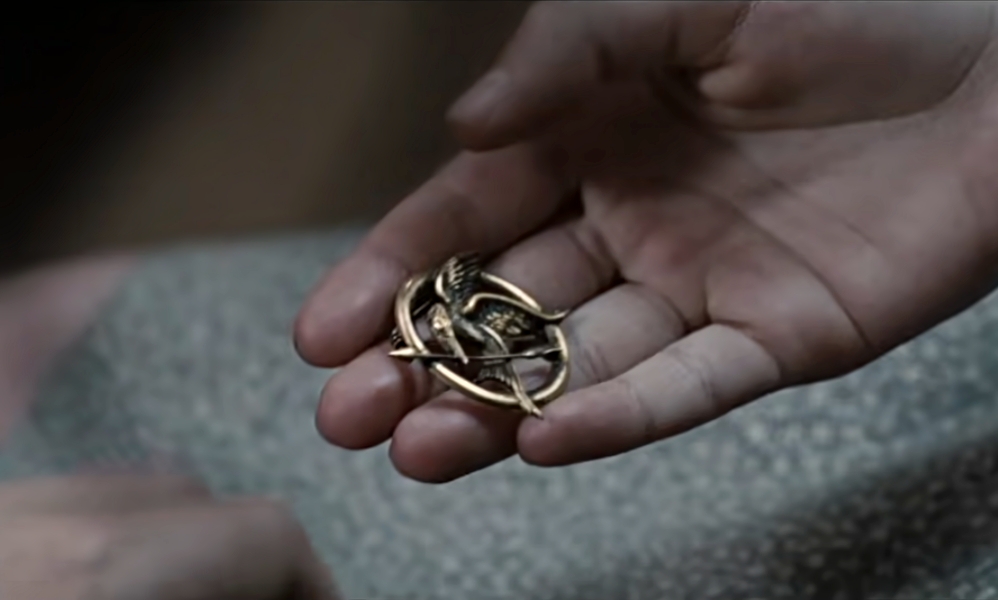 從故事線順序《飢餓遊戲:鳴鳥與游蛇之歌》到《飢餓遊戲:自由幻夢終結戰》的電影象徵來看,一開始是學舌鳥對抗游蛇;變成咬著弓箭低著頭,代表大家有反抗之心但從未實行又或者是正在等待機會;接著凱妮絲出現成為領頭鳥準備展翅;最後就是點燃12區居民們的鬥志,打破行政區隔閡,共同迎戰施惠國總統史諾!