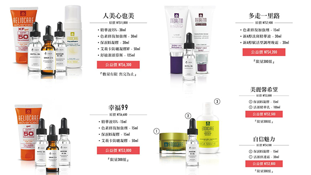 2019 杜克推出限量公益套組,包括「人美心也美」、「幸福 99」、「多走一里路」、「美麗 馨希望」、「自信魅力」等5大明星套組,凡購買任一限量公益套組,杜克將捐贈200元予勵馨基金會,做愛心感恩回饋。