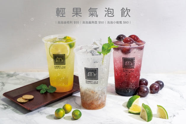 以「地獄黑糖八波鮮乳」爆紅的M T B ∣ 米堤銀行鮮乳茶,今年夏天一次推出三款可以吃得到新鮮水果的氣泡飲「泡泡真夠荔」、「泡泡金桔利」和「泡泡小萄氣」,泡泡真夠荔使用頂級荔枝果泥作為基底,加入店家人氣配料小紫蘇和椰果,喝起來豐富且清爽;泡泡金桔利放入現切現擠的新鮮金桔和台灣綠檸檬切片,酸酸甜甜交織的滋味給人不僅解膩更消暑;泡泡小萄氣獨家比例調製出有如葡萄香檳般的高級口感,最厲害的地方是每杯可都是放入完整的六顆新鮮葡萄啊!