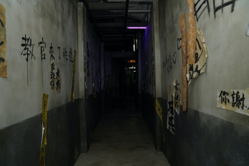 展覽總共分成三個區域,第一區便是沈浸式的場景體驗區,完美還原了翠華中學風雨交加的夜晚,除了有方芮欣醒來的教室、詭譎的廁所、貼滿字條的無限走廊之外,還有「最後終結」的大禮堂,玩家可以盡情享受1960年代步步為營、肅殺的恐怖氣氛!